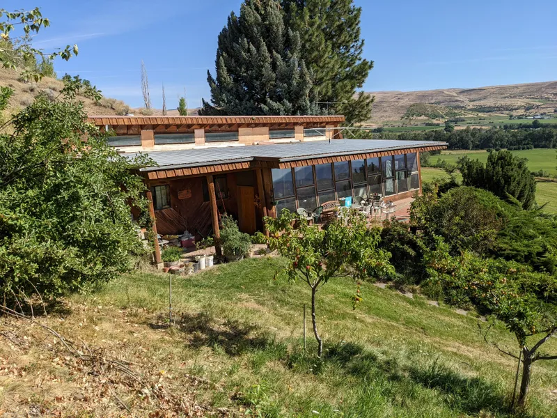Lovely 7.75 acres with fabulous views, 1/2-1 acre organic orchard with peaches, pears, apricots, apples, and pears. Excellent water irrigation from Eagle Creek drainage. This is a custom-designed, eco-friendly sustainable low-maintenance home. Huge garden area. Beautiful handcrafted woodwork throughout the home and fireplace stonework, excellent light, high ceilings and a large solar atrium. Open floor plan with a wonderful kitchen. Heating is very affordable. High-speed internet. Great schools! Fabulous water rights and soil. It would be ideal for a small terraced grape vineyard. The existing orchard in good condition.