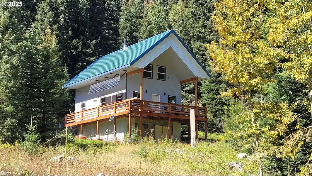 Rare Offering in the old mining town of Cornucopia! Home was rebuilt from the ground up starting in 2020. Offers 3 levels for comfortable and relaxed living and getting away from it all or, if you choose, stay connected with fiber optics for internet and streaming. Explore, fish, hike and hunt if you choose or bring your snowmobile and run the groomed trails throughout the area. Water is gravity fed from Elk Creek with a 275 gal. accessory storage tank for winter plus a working fire hydrant on the property for added fire protection and insurance requirements. Hot water for the house is provided by on demand propane water heater. A redwood covered deck surrounds on 3 sides of the home and is a great place to watch the star shows at night. The home itself is of 6x6 construction with cement fiberboard siding, R-21 in the walls and R-31 in the ceiling. The home is powered by the sun with three 330 watt solar panel with a 2000 watt inverter and is kept cozy with a Blaze King woodstove. The basement offers a space that can be finished for additional living space, used for storage or take advantage of the double doors allowing your snowmobiles or equipment inside access. This property is a wonderful get away anytime of year. The Cornucopia Lodge is less than a mile away and in the winter the trail is always groomed the 6 miles from the main road. A great opportunity to own a piece of history in snowmobile haven with that "awwwww" relaxation vibe!