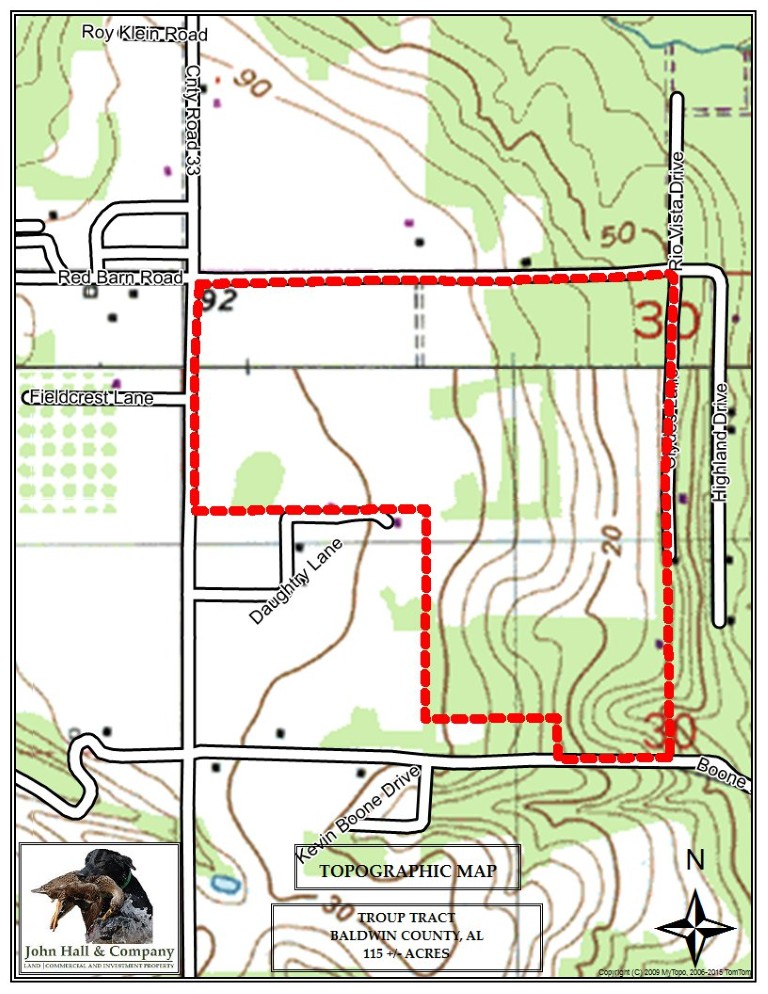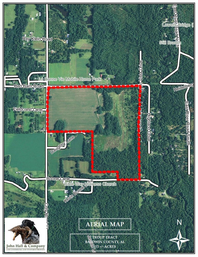 This beautiful property is comprised of 50% agricultural land and 50% wooded land. It has road frontage on CR 33, Red Barn Road and Boone Lane making it very easy to develop with minimal up-front cost. It has excellent soils and 100% of this property is suitable for residential development. The property is located only 2 miles from Fairhope in one of the fastest growing areas of the State of Alabama. Dont miss this excellent investment opportunity!