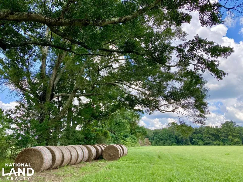This diverse tract has a lot to offer: paved road frontage, fenced and cross fenced pasture, duck pond, hayfields, merchantable timber, and 2 ponds, all less than 45 minutes from Mobile or Daphne. Located between Stockton and Tensaw in the Latham community, an area known for strong timber production and excellent deer, turkey, dove, quail, and duck hunting, enjoy easy access along Highway 59, an improved road system, a network of well-sized, strategically placed food plots with shooting houses, fishing pond, cattle pond, cross fencing, duck pond, and Red Hill Creek frontage. The 92+/- acres of agricultural land is a rare attribute for this area, and the timber value is strong, consisting of merchantable stands of mature natural pine and mature hardwood. Utilities are available at multiple locations along the abundant road frontage, and there are multiple scenic areas for building a lodge or permanent home. Large tracts are rarely available in this area, and ADDITIONAL ADJOINING ACREAGE AND OTHER DIVISIONS ARE AVAILABLE, UP TO 1,334+/- ACRES TOTAL... Don't miss your chance to see this one. Contact Clint Flowers, ALC at 855.NLR.LAND for more information.