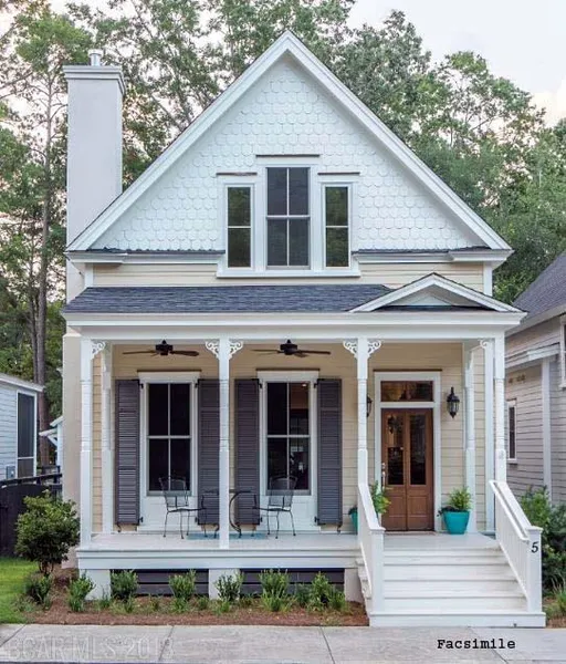 Pre Construction! Starting soon. Cottage Style house in desirable subdivision. Open Living/Dining/Kitchen with Fireplace with remote. Trey Ceilings & Crown Molding. Powder Room and Laundry off Kitchen. Kitchen has Granite countertops with undermount sinks. Stainless Steel range, microwave/hood, dishwasher & garbage disposal. Master Suite on Main level open to screened porch. Master Bath has double vanities & Large shower. Second level has two bedrooms with bath. Tile and Carpet flooring. Carriage hardware on double garage with Breezeway patio. Hurricane Fabric shield. Subdivision has beautiful mature live oaks, curbed streets with lamp posts. Access to the ICW. Bike path, paved walkways throughout the community. Ideally located across from the common area.