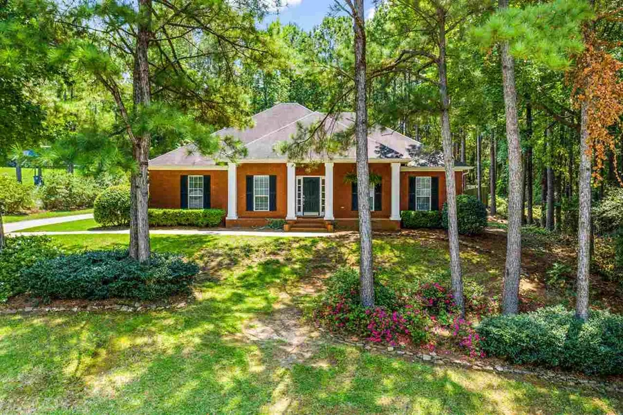 This beautiful and spacious home has a charming front porch and is on over an acre in Spanish Fort! This house has a split bedroom floorplan and has 4 bedrooms + 2 baths. The kitchen includes new stainless steel appliances (2018) including a natural gas stove. Also includes white cabinets, granite countertops and tile backsplashes. There is beautiful new white oak hardwood flooring throughout the home, except for the tile in the wet areas. Smooth ceilings and beautiful trim mouldings throughout. The living room is shaped just right for seating and has a built in bookshelf next to the gas fireplace. The master bath has double sinks and faucets, garden tub and a separate shower. Nearly all rooms have ceiling fans. The utility room is oversized and provides storage, a utility sink, and a whole house water filter system. The washer and dryer convey. The attic is equipped with two attic fans for energy efficiency during summer months. The backyard is a great size and the lot goes beyond the fence into the woods, as the lot is 376 feet deep. Whole yard sprinkler system. The subdivision allows boat or trailer parking. This all brick home is easy to maintain and provides easy access to schools, the interstate, and shopping! All information provided is deemed reliable but not guaranteed. Buyer or buyer?s agent to verify all information.