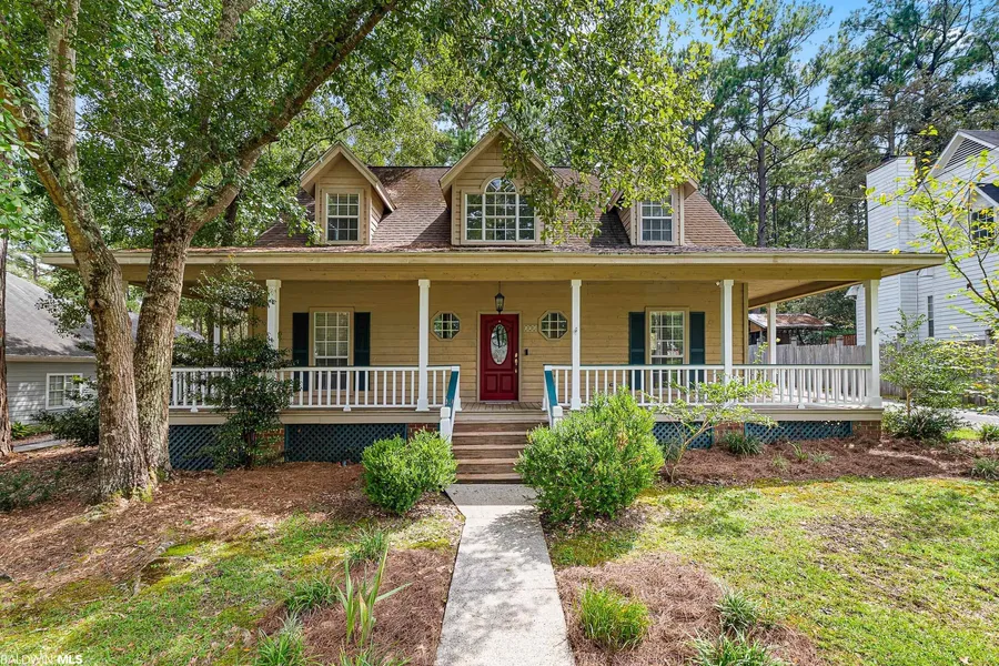 This 4 bedroom, 2.5 bath Creole style home has so much to offer. Great room has hardwood floors, wood burning fireplace and French doors leading onto the large back deck. Split brick floors in the breakfast, kitchen, dining and foyer. 9? ceilings throughout the downstairs, updated cabinets and butcher block countertops in the kitchen as well as stainless appliances and stainless barn sink. Primary bedroom and bath are downstairs as well as a half bath in the foyer. 3 bedrooms and 1 bath upstairs. Large wrap around front porch with side entry into the utility room. Large attached 2 car carport with storage/workshop area. Great location with easy access to Daphne High School, Hwy. 181 and I-10. Lot backs up to large undeveloped wooded area making for a private setting on a quiet street. All information provided is deemed reliable but not guaranteed. Buyer or buyer?s agent to verify all inf...