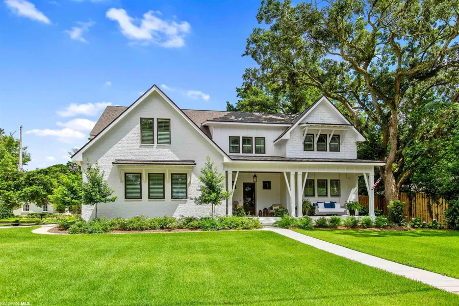 Discover this absolutely beautiful home located in the Fruit & Nut of Fairhope. Located centrally on White Ave and S. Bayview St, the house sets up beautifully with a view of Mobile Bay. Entering through the front door of this 2-story home, you enter into some of the finest features and craftsmanship. This gorgeous home offers tons of natural light throughout where all the windows and doors are Impact rated for Hurricanes. The main floor features a living room with a fireplace, Gourmet kitchen with Wolf and Subzero appliances, a huge island with marble countertops, and a dining room. The owner?s suite is complete with a luxurious bathroom, walk-in shower, soaking tub, and custom large walk-in closet with island. Opposite the living room you have a spacious office. The sliding glass doors from the living room open out to the slate covered porch with a fireplace, and a pergola with firepit. It also has a separate gated storage area for the outdoor grills. The 2nd floor has 4 large bedrooms and 2 baths as one is Jack and Jill bath and a sitting area that captures the views of Mobile Bay. Also has a 2nd utility room upstairs for family or guests. The home also has a home generator, 2 car garage with a built-in ice machine. This exceptional home offers all that you need in a home, especially the view of Mobile Bay. This location is a short distance to the Bay, to Fairhope Pier or even take a short ride Downtown in your golf cart for wide selection of amazing shops and restaurants that Fairhope has to offer. Be sure to look at the spectacular virtual tour of the home. All Information provided is deemed reliable but not guaranteed. Buyer or buyer?s agent to verify all information.