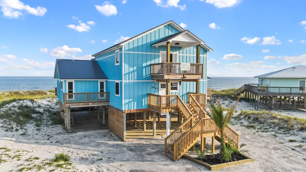 Great rental investment situated directly Gulf front in Gulf Shores. This property is currently in the rental program with Kaiser Vacation Rentals and is being offered turn key. The main level features a large kitchen with two refrigerators, 2 ovens, 2 microwaves, 2 dishwashers, ice maker and large island perfect for large groups. There are 4 bedrooms, which sleeps 10 altogether, on the main level with 3 full bathrooms, spacious walk-in laundry room and open living and dining area. The second floor includes a large bunk room that sleeps 12, separate game room and 2 full bathrooms. This beach house would be perfect for large family gatherings or wedding parties.