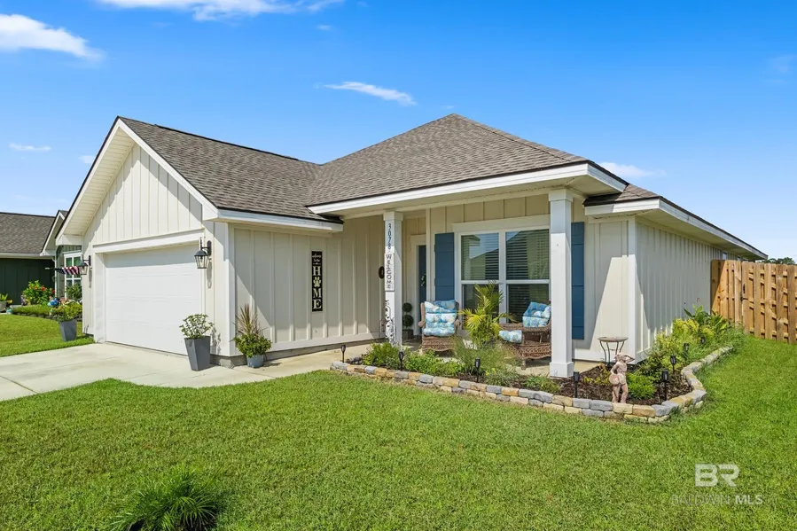 Are you in search of a new construction home that comes complete with many upgrades? Look no further! This stunning 4-bedroom, 2-bathroom residence features numerous enhancements that set it apart from typical new builds and is ready for you to move in! Enjoy the spaciousness of 10-foot ceilings in the main living areas, a stylish kitchen backsplash, granite countertops throughout, stainless steel appliances, and easy-to-maintain EVP flooring. The home is filled with natural light, and the open floor plan is perfect for entertaining. At the front, you'll discover a flexible space that compliments the four generously sized bedrooms, which can serve as a private dining room, playroom, office, and much more!The exterior is equally impressive. It boasts a front porch, brand new privacy fencing with iron rods, two fence gates, and a new shed included with the property. In the backyard, you'll enjoy 60 feet of unobstructed views of the community pond, providing privacy on either side and a breathtaking backdrop. This home is Gold Fortified and equipped with hurricane fabric storm protection shutters. Additionally, this community features a pool complete with a 6-inch Baja tanning shelf, all while maintaining low HOA fees. Buyer to verify all information during due diligence.