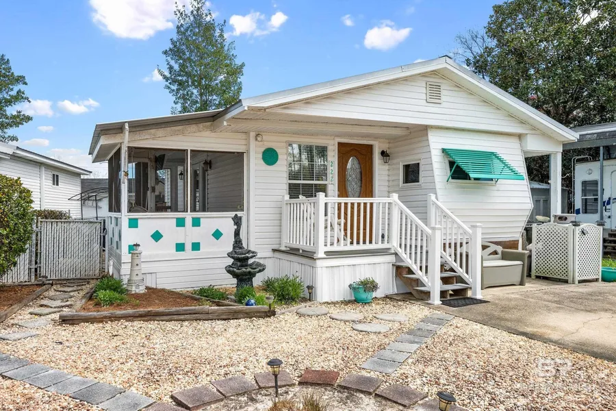 Beautifully remodeled home in Spanish Cove, Lillian, Al. This is an RV that has been built on to and includes a spacious kitchen, large living room and two bedrooms. The home comes furnished and is move in ready. Metal roof, new AC, on demand hot water heater, beautiful granite throughout, walk in closet, and a subway tile back splash in the kitchen. Low cost utilities. Sleep number bed in the guest bedroom. Fenced back yard and pea gravel in the front yard for minimal upkeep. Nice, peaceful screened side porch for relaxing. The home also comes with a storage shed in the back yard. The Spanish Cove community boasts a year round pool, fishing pier on Perdido Bay, shuffleboard, basketball, and tennis courts, playground, public showers, laundry facilities, 2 clubhouses and 24-hour security. Activities include exercise classes, art classes, jam sessions, potluck dinners, bingo, Bunc...