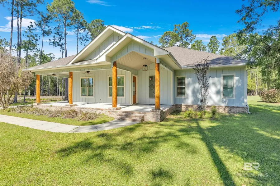 Transferable Flood policy! NO HOA, and close proximity to Wolf Creek park with Kayak Launch and sandy swimming area! Fantastic 3-bedroom, 2.5-bath home located just one row off the water in the highly desirable Wolf Bay Point neighborhood. This coastal gem is packed with standout features, starting with a spacious front porch perfect for morning coffee and a stunning wood-burning fireplace on the screened-in back patio—ideal for year-round relaxation. Inside, the master suite offers dual walk-in closets, a luxurious claw foot tub, and a beautifully tiled walk-in shower. The open living area features double-sided gas logs to create the perfect ambiance from every angle. Built for comfort and convenience, a tankless water heater for endless hot water, a propane cooktop, and a stylish wet bar—perfect for entertaining. Located in the Elberta school district and just minutes from the Beach Express and Foley shopping, this home delivers the best of quiet bay living with quick access to everything you need. Buyer to verify all information during due diligence.