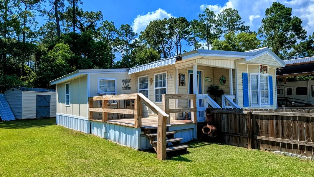 **Welcome to your charming escape in the highly sought-after subdivision of Spanish Cove!**This adorable two-bedroom, two-bath cozy cottage is a blend of comfort and style, offering a tranquil haven that feels like home from the moment you step inside. The beautiful kitchen features granite countertops and modern appliances while the spacious primary suite with an ensuite bath is complete with a luxurious walk-in shower and spacious walk-in closet providing ample space for your wardrobe, making it easy to keep everything organized and within reach. Step outside to discover your personal oasis on the wooden deck, ideal for entertaining or simply enjoying the serene surroundings. With a convenient awning, you can relax in the shade while overlooking the beautiful and pristine fenced yard—ideal for pets and outdoor gatherings alike. With an additional bedroom and bath, this cozy cottage is great for guests or a home office. Storage and parking are not a problem with the outdoor shed for all your storage needs and a spacious paved driveway. The friendly Golf Cart community of Spanish Cove offers many amenities such as, 24 Hour Security, an outdoor pool that overlooks Perdido Bay and is seasonally covered & heated, as well as a club house, Bay access, a fishing pier, a playground, a beach area, and a tennis/pickleball court! WOW! Additionally, this home is located just minutes from a public boat launch, the beautiful beaches of the Gulf of America, as well as shopping, dining and amusement parks and many activities living at the Gulf Coast has to offer!!!!Don't miss out on this Gem of a property in a Great Location! Call and schedule your private tour TODAY!!!! Buyer to verify all information during due diligence.