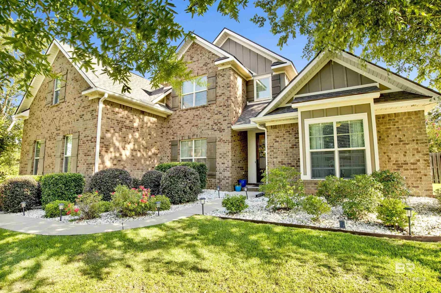 Nestled among a beautiful, mature landscape, this exceptional home exudes warmth and elegance at every turn. Step inside to discover wood flooring throughout living spaces. Wainscoting in dining room. The oversized great room becomes a true centerpiece of this home with its tray ceiling, recessed lighting, and striking two-sided fireplace. Kitchen is a dream for cooking enthusiasts, massive L-shaped island, Bosch appliances including a new Bosch gas range, stainless steel appliances, tile backsplash, kitchen desk/coffee nook, and solid wood raised panel cabinetry. Plus a charming banquette for casual dining. Mudroom offers added convenience, and the flexible office space on the first floor can easily serve as a fifth bedroom. Primary suite showcases wood floors, tray ceiling, recessed lighting and an ensuite bath with a separate tub and shower, dual vanities, and two walk-in closets. Additional bedrooms are equally impressive—large in scale with ample walk-in closets. Floor to Ceiling windows allow natural light inside while enjoying views of the oversized, fenced backyard. Throughout the home, you'll find solid wood tread stairs, loads of storage, and a relaxing screened porch perfect for unwinding. The side-facing garage rounds out the property’s impeccable design, combining functionality with charm. Convenient to Shopping, I-10 and schools. Buyer to verify all information during due diligence.