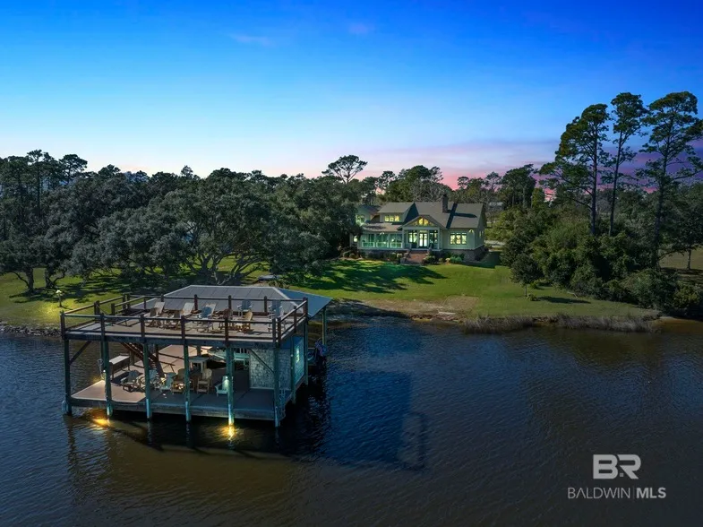 This Luxurious Custom Built Waterfront Home on Soldier's Creek is just minutes from the Gulf of Mexico in Perdido Beach Alabama and features superior craftsmanship throughout the 4,600 square feet of living space with 5 Bedrooms, 5 1 2 Baths, and a 40' by 40' Double Decked Boathouse with 2 boat lifts on a 1.23 acre lot with 120 front feet on the water. Soldier s Creek provides protected deep waters for sailboats and large watercraft and immediate access to the Intracoastal waterway and the Orange Beach and Perdido Key Areas. Master Builder Chuck Kelly used the finest available materials when constructing this home in 2017, with new heart of pine floors throughout, a foundation with reinforced concrete block and old brick facade, custom made interior cedar doors, Italian imported painted accent tiles in the kitchen and baths, custom knobs and door pulls, a living room chandelier from ...