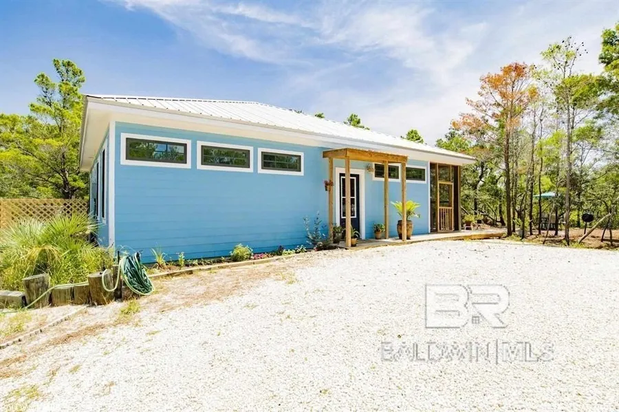 FORT MORGAN COTTAGE WITH ZERO STAIRS!!! Adorable Cottage in Cabana Beach! NEW LANDSCAPE WITH PALMS added May 2025 and brick paver back patio. Short-term rentals allowed! Perfectly situated between the Gulf of Mexico and Mobile Bay, Cabana Beach Estates is a quiet, secluded neighorhood off the beaten path. It's a perfect location where vacationers and full-time residents co-exist nicely enjoying the neighborhood private Gulf-Front Beach as well as the private neighbood park on Mobile Bay with fishing pier. This quaint very well-built Custom cottage comes fully furnished, has 3 bedrooms 2 bathrooms a large open floor plan living, dining, kitchen, and sitting area. So much craftmanship in the highwooden ceilings, tongue and groove walls, and hand-made bunk beds. You'll love the gas range in the kitchen and large picture window that overlooks the wooded back yard. Enjoy mornings on the screened-porch drinking your coffee and listening to the sounds of nature. The beach is a short walk or golf-cart ride away with car parking available as well. If you enjoy water sports, the private neighborhood fishing pier is just across the road from the community entrance. There's also a public boat launch right up the road. Cabana Beach residents also have the ability to purchase a "non-resident membership" to the Beach Club Resort next door where you'll find multiple pools, tennis courts, exercise facilities, restaurants and more. Whether you are looking to make Gulf Shores your full-time home , RETIREMENT HOME with NO STAIRS, or looking for a 2nd home investment property, I think you'll fall in love with this special home. Small annual HOA fee of $300 helps maintain the community beach and bay access and there is also an annual road maintenance assessment of $300. Buyer to verify all information during due diligence.