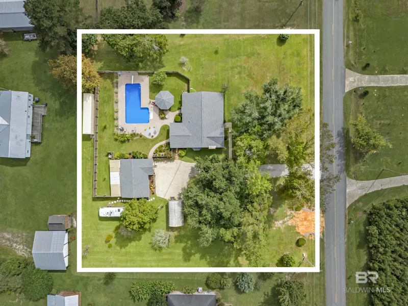 Looking for an incredibly peaceful and private sanctuary just minutes from downtown Fairhope? This beautifully updated home is nestled among mature oaks and fruit trees, and offers an unforgettable outdoor experience with a spacious in-ground pool, a charming gazebo, a covered patio as well as a cottage and a large storage shed. The fenced backyard is truly a world removed, even giving the feeling of having your own personal resort that is perfect for entertaining and relaxing. With the beautiful spacious in-ground saltwater pool, a charming gazebo and the covered patio, every detail is perfectly positioned to enjoy the peaceful haven in complete privacy. Inside you’ll find thoughtful updates throughout, including a 2023 roof and HVAC system, beautiful LVP flooring, stainless appliances, and fresh quartz countertops. The vaulted living room showcases a gorgeous wood-burning fireplace, while the primary suite offers its own private access to the backyard retreat. The guest-cottage comes complete with electricity and with plumbing connections already in place for a future bathroom and/or kitchenette, perfect for guests, hobbies or a peaceful hideaway. Storage is never an issue here with a large 23’x 21’ workshop attached to the carport, plus a 7.5’ x 13’ storage room. The fruit trees include satsuma, lemon and persimmon as well as blueberry bushes. All of this just minutes from the charm of downtown Fairhope, yet tucked away in a setting that feels a world apart. Come see this today and make this your own personal oasis! *Information is deemed reliable but not guaranteed. Buyer or buyer's agent to verify all information. Buyer to verify all information during due diligence.