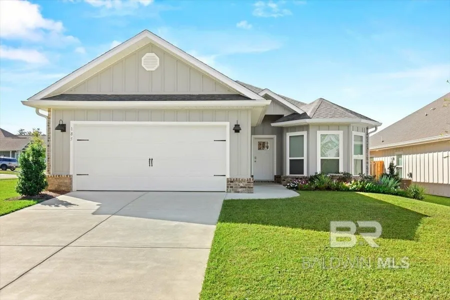 Welcome to Overland! This stunning Gold Fortified home is a "show stopper" and offers modern style and potential insurance discounts—with its hurricane shutters and quality construction. Step inside and you’ll immediately notice the light, airy color palette and birch-toned luxury vinyl plank flooring that flows seamlessly throughout the home. The 9-foot ceilings and open-concept layout create a bright, spacious feel filled with natural light. The kitchen is a true showpiece, featuring unique soft gray cabinetry, white quartz countertops, stainless steel appliances, new stove with self cleaning feature, a large island, and a walk-in pantry. The seller has added additional custom cabinetry for even more storage, making this kitchen as functional as it is beautiful. The primary suite is a relaxing retreat with a double vanity, soaking tub, separate walk-in shower, and walk-in closet. Additional highlights include ceiling fans in every bedroom, a spacious laundry room, and a two-car garage. Outside, enjoy your beautiful professionally landscaped yard complete with an irrigation system, screened back porch, and an extended patio—perfect for entertaining or unwinding at the end of the day. The home also includes whole-house gutters for easy maintenance. This home was just built in 2023 and has almost $20,000 in upgrades! Located in the desirable Overland subdivision, this home offers direct convenient access to downtown Fairhope, Thomas Hospital, and nearby shopping and dining. This move-in ready home blends thoughtful design with practical upgrades in every detail—come see it for yourself and fall in love! Schedule your showing today! Buyer to verify all information during due diligence.