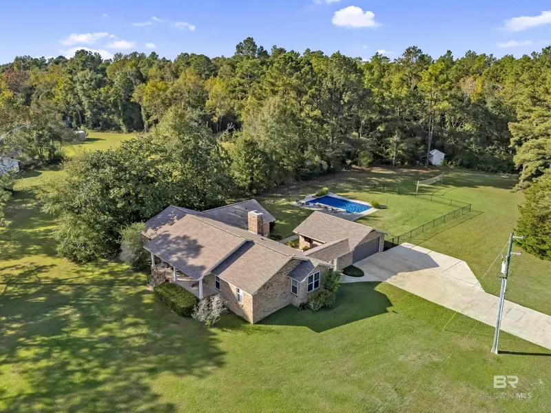 Peaceful and private, this updated brick ranch sits on nearly two acres overlooking a beautiful lake. The 4-bedroom, 2-bath PLUS an office space!! This home offers an open airy layout with a bright kitchen, deep pantry, and an expansive living area just off the kitchen. The dining space features a lovely lake view, while the living room includes a fireplace and opens to a private courtyard. From there, step outside to the courtyard-style patio and saltwater pool with a new liner, upgraded pump, and new salt cell. Beyond the pool is a volleyball area, creating a versatile outdoor setup ideal for gatherings or relaxation. The property offers both privacy and convenience — approximately 7 miles to I-65, 6 miles to the Florida line, and 10 minutes from the Baldwin County Courthouse. Recent updates include a roof, HVAC, insulation, just installed whole-home Generac generator, and more — a we...