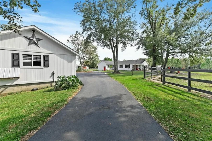 Income producing Horse property paradise. Adorable farmhouse located in Baldwin county, Robertsdale, AL. 30 mins to the beach, close toBaldwin Beach Express and I-10. This 1835sq+-ft. home is situated on 3 beautiful acres at the end of a deeded private drive. It features three bedrooms, twobathrooms,living room and den with a spacious kitchen. Newer roof, windows, gutters,appliances and HVAC system with a service contract in place. Housecompleted renovated with new paint, countertops ceiling fans, and lighting. Artesian well water! On Septic with brand new field lines. It s the small details thatshine, showcasing this amazing opportunity. On the property you will find a detached garage/work shop. Property also features an income producing cottage, rentingfor $1250 a month. No lease in place. Cottage opens up to an huge 2000sq ft wooden deck that surround the swimming pool. Enjoy hot days...