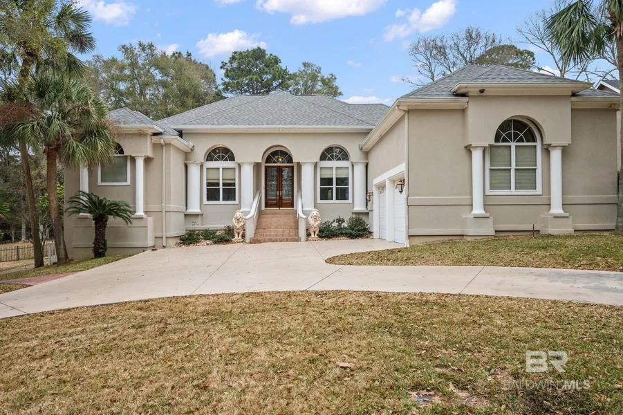 Welcome to this truly one-of-a-kind home in the highly sought-after Rock Creek community of Fairhope, Alabama. This exceptional residence offers 4 spacious bedrooms, 3 full bathrooms, and an additional half bath, with soaring 12-foot ceilings that create an open, light-filled atmosphere throughout. The home features a formal dining room ideal for hosting gatherings, along with a dedicated office perfect for working from home or a quiet retreat. The primary suite is a standout, offering a large walk-in closet and a well-appointed en-suite bath designed for comfort and relaxation AND a whole house Generator!One of the home’s most impressive features is the enormous heated and cooled sunroom, providing year-round enjoyment and seamless indoor-outdoor living. Step outside to the beautiful patio with a built-in grill, perfect for entertaining, all set within a fenced backyard overlooking the 9th hole of the Rock Creek Golf Course—a rare and serene setting. Adding incredible versatility, the home also includes a 750-square-foot apartment in the basement with a private, separate entrance, ideal for guests, extended family, or potential rental income. Thoughtfully designed and located in one of Fairhope’s most desirable neighborhoods, this home is truly one of a kind and a must-see. Don’t miss this rare opportunity to own a Rock Creek gem. Buyer to verify all information during due diligence.