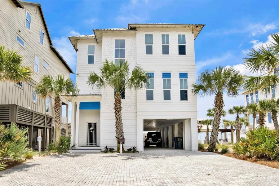 Step into unmatched luxury with this direct Gulf-front estate located in an exclusive gated community along the Alabama coastline. Built to Gold Fortified standards, this 5-bedroom, 5.5-bath home offers the perfect blend of elegance, strength, and serenity. Professionally furnished and decorated, this coastal masterpiece sleeps 10–12 guests comfortably. The home has never been rented and is in meticulous condition, though rental projections reach up to $239,000 annually for those seeking investment potential. Interior features include: Oversized master suite featuring a private living area with a sofa, minifridge, and coffee bar, ideal for morning quiet time or evening wind-downs. Private master balcony with unobstructed views of the sugar-white sands and turquoise waters. Massive walk-in closet, Spa-like master bath with his and hers vanities, a huge walk-in tile shower, and elegant finishes throughout. Antique heart pine flooring, Sonos sound system with individual room controls, Elevator access to all levels, Quartz countertops, Laundry rooms on multiple levels. Outdoor living includes: Private heated gunite pool, Expansive Trex decking on the back patio — perfect for lounging, grilling, or enjoying Gulf sunsets. Fire pit, large commercial ice maker, gas grill, gated storage for all the beach toys, paver driveway, and fresh exterior paint (2022), Security cameras for peace of mind. Enjoy private beach access, community pool, and close proximity to shopping and dining. This is coastal living at its finest — a truly turnkey luxury escape. Buyer to verify all information during due diligence.
