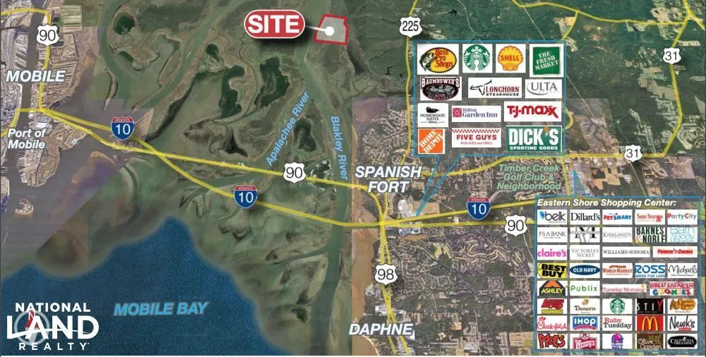 Hunt and fish across tens of thousands of acres right at your fingertips by utilizing this unique property. It's located in the Mobile-Tensaw River Delta on the Apalachee River just off Bay Minette Basin and the mouth of Mobile Bay, minutes from multiple boat ramps and water accessible restaurants of Spanish Fort, Highway 225, I-10, and the causeway. Build your hunting or fishing cabin and explore the Five Rivers and Mobile area area to your heart's desire or utilize the property for conservation use and tax shelter. Feasible divisions may be considered. Contact Clint Flowers, ALC at 855.NLR.LAND for more information.