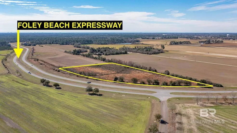 9 flat acres with 1200+ feet of road frontage on the heavily traveled Foley Beach Express. Currently zoned agricultural. Owner was planning to put in boat & RV storage - see rendering. So many possibilities for this prime real estate! Buyer to verify all information during due diligence.