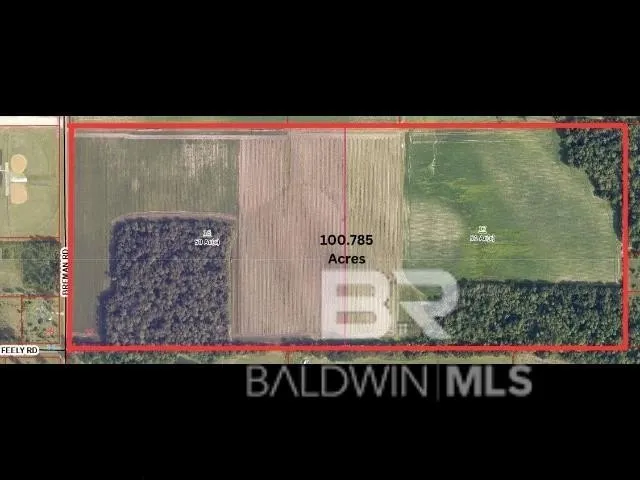 This expansive 100.785-acre property, located in Elberta, consists of two adjacent parcels being sold together. Parcel 53-08-27-0-000-016.000 offers 50.058 acres, and Parcel 53-08-27-0-000-017.000 offers 50.727 acres. The property features road frontage on Breman Road, just off Highway 98, providing excellent accessibility and visibility. This prime land is ideal for a variety of uses, including residential development, farming, or investment opportunities. With ample space for future growth, this property is situated in a rapidly growing area, making it a valuable investment in a highly desirable location. Buyer to verify all information during due diligence.