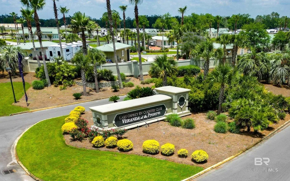Welcome to Lake Osprey RV Resort! Lot 40, this beautiful lot located near to the clubhouse, pool, and fitness center, plus, it boasts a full lake view without the price! This incredible lot has a 75' RV pad with hookups. This lot has been upgraded with a paver-style patio added to the length and side for seating and outdoor enjoyment. This lot is fully functional as is, yet it can still be upgraded with outdoor living spaces or even a foundationally built home if ever desired. Lake Osprey is a subdivision with an HOA catering to the discerning luxury RV culture. Dues of $320/mo. covers water, sewer, trash pickup, internet, cable TV and lawn care. You are welcome to live full time on site with or without a house, or simply vacation, or even rent out the lot in an onsite rental program for investment income. Located in coastal Alabama, Lake Osprey is minutes to the gulf beaches, regional airports, amusement parks, shopping, and a plethora of tourist destinations. The community amenities include a stunning infinity pool and hot tub, tiki bar, commercial kitchen for reserved use, pickleball courts, putting green, generously equipped fitness center, and laundry facilities. For golfers, Lake Osprey is next to Soldier's Creek Championship golf course. This lot can accommodate Class A, Class C and 5th wheels with age and length requirements. No need to find seasonal reservations elsewhere when you can own your own fabulous lot! Live, vacation, or rent, Lake Osprey will welcome you! Buyer to verify all information during due diligence.