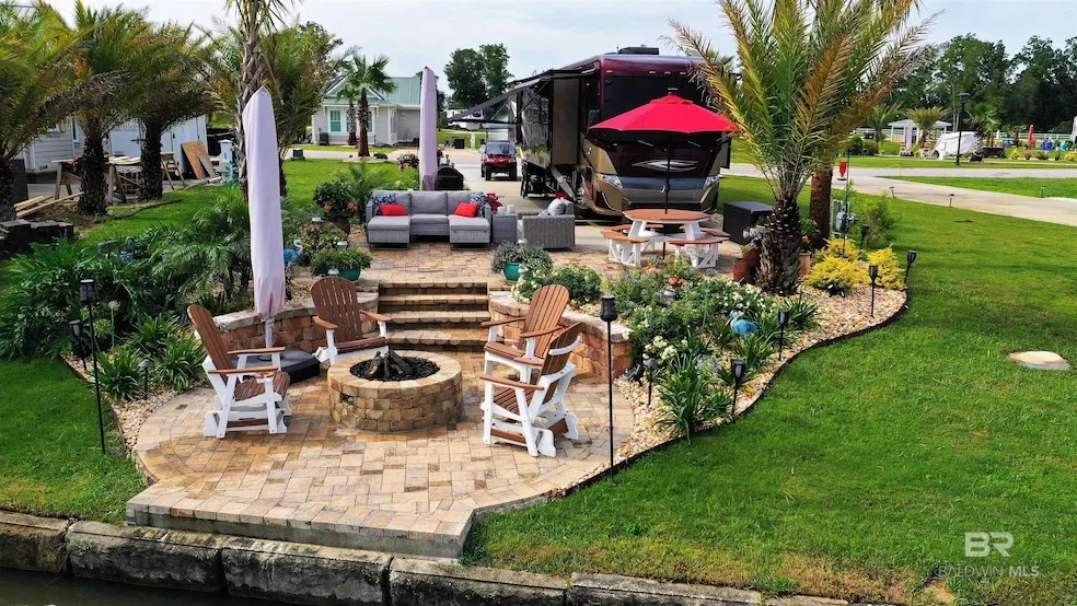 RV living at its finest. This lot sits on the main lake at Lake Osprey and is equipped with all you need to enjoy your home away from home - and watch the resident turtles! The community is truly gardener's paradise. The Palm trees and flowers are just beautiful. The lot features a gas firepit right next to the water, with Amish furniture that is included. It is private area and cannot be seen from the road. Listing includes: an Amish picnic table with umbrella, outdoor sofa and chairs with large umbrella. When you get hungry grill yourself something on the grill that conveys. After dinner take a ride on the golf cart that is also included. Great sunsets cap off the day. There are even plans for a home that can be built on the lot available. The Club house boasts a large kitchen and sitting areas. The pool is great for cooling off or relaxing in the hot tub. There is a Tiki Bar, outdoor sitting areas, pickleball courts, fitness center, and laundry facilities. The residents also have a range of activities from Bingo, to parties, golf cart poker runs and sewing. This has so much more to offer than just a lot. HOA fees cover water, trash pickup, high speed internet, cable, sewer, and lawn care. This location is close to the beautiful Gulf Coast Beaches and Soldiers Creek Golf course is right up from the main entrance. Close to Owa, Tanger outlet mall, restaurants and short drive to Pensacola. There is also a Tiffen Red 37 PA 2019 that is being sold separately. Qualified RVs include Class A 15 years or newer, Class C and 5th wheels 10 years or newer, all RVs must be 28 or longer Buyer to verify all information during due diligence.