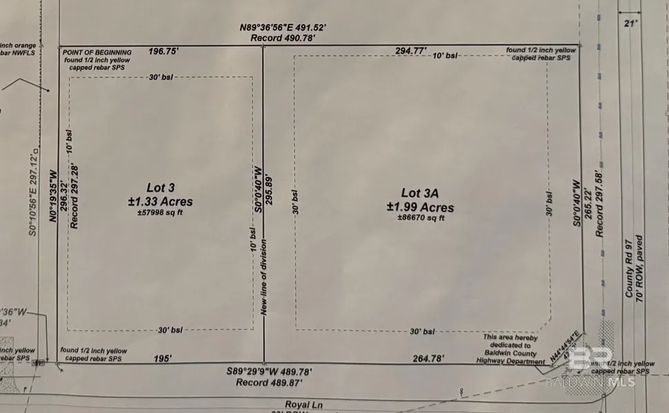 Prime 1.99 arce lot in Elberta, Al! No HOA! Top rated school systems. On the corner of CR 97 and Royal Lane. Utilities are avalaible. Close to beaches and easy boat bay access. Country living with all the amazing amenities the gulf coast has to offer. No wetlands. Plenty of space for a home, barn and a boat! Completely buildable lot. The adjacent lot is also for sale and is 1.99 acres. Convenient to Foley, Gulf Shores, Orange Beach, Pensacola and of course the cute and quaint towns of Elberta, Al. and Lillian, Al. Buyer to verify all information during due diligence.