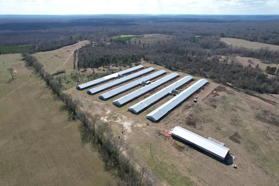 The poultry houses are 40500 and still have most of the equipment from the poultry operation in them. That includes feed bins, generator, feed lines, controllers, heaters, fans, and other components. There is also a litter stack shed that is 40150 feet and 14 tall with a concrete floor.