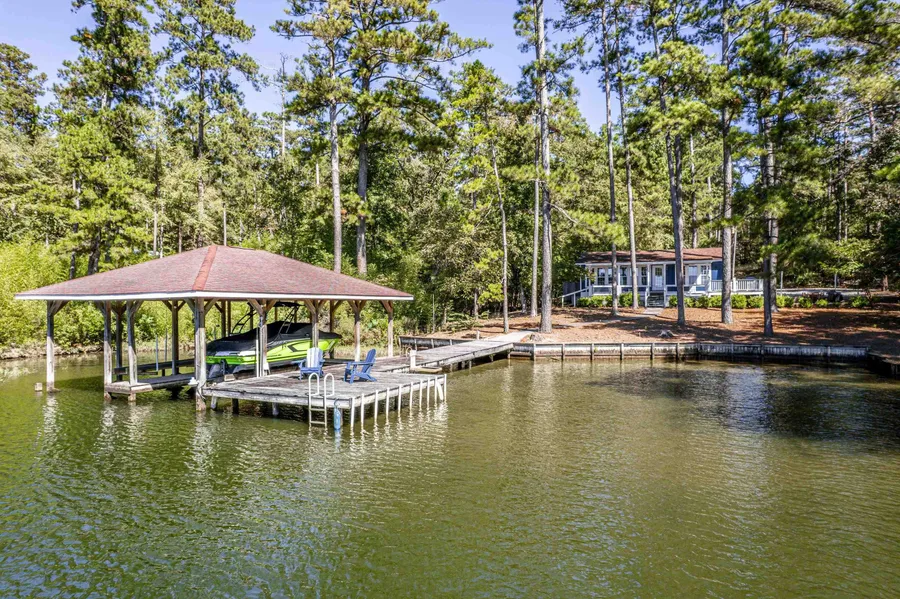 It's worth repeating-the Island Creek area of Lake Sinclair has some of the clearest water on the lake. This 2BR/2BA cottage is perfect for enjoying the lake life without any worries. The lot offers privacy, low yard maintenance, a single stall boathouse, and a beautiful view. Inside are 2BRs/2BAs and an open living space with kitchen and dining areas. The lakeside porch is where you'll spend most of your time, enjoying the lake view. There's also a paved firepit area that large enough for dining outside, enjoying s'mores, and playing games. This is a Ga Power full lease lot, so no short term rentals allowed and annual lease fees will apply. Boat also for sale separately. Some furnishing can be included. Call today to see this sweet deal!