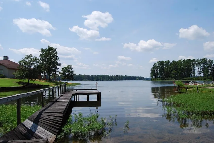 Nice Lake Sinclair lot that has an old trailer, dock, well and septic tank. Property is ready to be built on and is level with nice view and good water depth. Enough water frontage for a single boat shelter. Dock & Trailer need work. Septic and Well should be functional but not guaranteed.