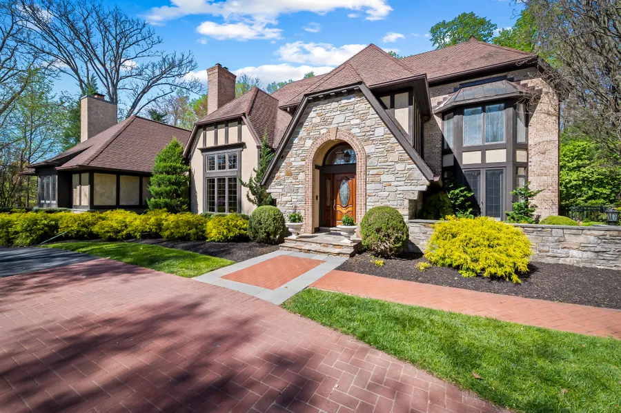 Establish roots in the Laurelford neighborhood. 13023 Jerome Jay Drive presents a four-bedroom and five-full bath Tudor-style retreat with a storybook curb appeal that will captivate your imagination. This solid, custom-built home by Towles is a masterpiece of timeless elegance and an opportunity to add a contemporary flair. As you step through the grand two-story entryway with a marble floor and wrought-iron spindle staircase, you'll be greeted by the Tudor characteristics that define this home—accented dark wood details such as ceiling beams and embellished doorways; groups of windows filling the space with natural light; and a flexible, well-positioned floor plan perfect for both everyday living and entertaining. The main level features a great room with a cathedral wood-beamed ceiling and a stunning two-story stone fireplace. The gourmet kitchen is complemented by a spacious eat-in area with a dome ceiling and window surround that connects you to the outdoor living area. For more formal occasions, the two-story dining room offers an elegant setting. The entry-level primary bedroom suite is a private oasis with wood floors, a French door leading to a private bluestone patio, and a large walk-in closet with a built-in closet system. Loaf in luxury in the private bath featuring dual vanity sinks, a spa tub, and a spacious steam shower with custom glass doors, bench seating, and tile surround. Upstairs, two additional bedrooms await- a bedroom with an ensuite bath and walk-in closet, and another with direct access to the hall bath. The bonus room was added in 2022 with a separate dressing area and walk-in closet. The lower level is perfect for guests or extended family, featuring an in-law suite with a side door and personal entryway, a large bedroom with vinyl floors, an ensuite bath with a walk-in shower, a kitchenette with a full-size refrigerator, a family room with a brick fireplace and built-in bookcases, an exercise room, and a hobby/craft room. The home surround is a private paradise with a circular drive, a three-car garage with a workshop, abundant storage space, mature trees, and a spectacular patio for enjoying the serene surroundings. With its blend of Tudor charm and versatile living spaces, 13023 Jerome Jay Drive is more than just a home—it's a magical retreat. Schedule your private tour today and experience the allure of Laurelford living at its finest.