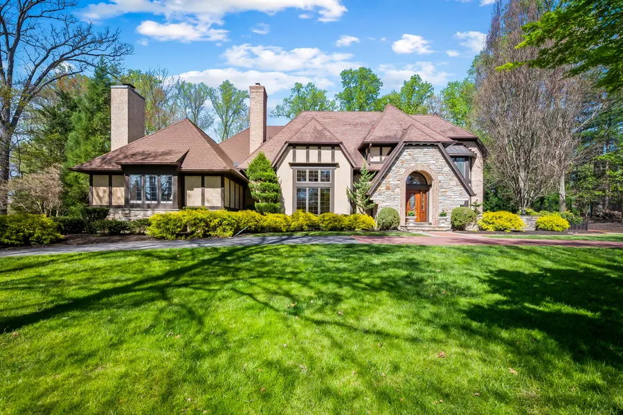 Establish roots in the Laurelford neighborhood. 13023 Jerome Jay Drive presents a four-bedroom and five-full bath Tudor-style retreat with a storybook curb appeal that will captivate your imagination. This solid, custom-built home by Towles is a masterpiece of timeless elegance and an opportunity to add a contemporary flair. As you step through the grand two-story entryway with a marble floor and wrought-iron spindle staircase, you'll be greeted by the Tudor characteristics that define this home—accented dark wood details such as ceiling beams and embellished doorways; groups of windows filling the space with natural light; and a flexible, well-positioned floor plan perfect for both everyday living and entertaining. The main level features a great room with a cathedral wood-beamed ceiling and a stunning two-story stone fireplace. The gourmet kitchen is complemented by a spacious eat-in area with a dome ceiling and window surround that connects you to the outdoor living area. For more formal occasions, the two-story dining room offers an elegant setting. The entry-level primary bedroom suite is a private oasis with wood floors, a French door leading to a private bluestone patio, and a large walk-in closet with a built-in closet system. Loaf in luxury in the private bath featuring dual vanity sinks, a spa tub, and a spacious steam shower with custom glass doors, bench seating, and tile surround. Upstairs, two additional bedrooms await- a bedroom with an ensuite bath and walk-in closet, and another with direct access to the hall bath. The bonus room was added in 2022 with a separate dressing area and walk-in closet. The lower level is perfect for guests or extended family, featuring an in-law suite with a side door and personal entryway, a large bedroom with vinyl floors, an ensuite bath with a walk-in shower, a kitchenette with a full-size refrigerator, a family room with a brick fireplace and built-in bookcases, an exercise room, and a hobby/craft room. The home surround is a private paradise with a circular drive, a three-car garage with a workshop, abundant storage space, mature trees, and a spectacular patio for enjoying the serene surroundings. With its blend of Tudor charm and versatile living spaces, 13023 Jerome Jay Drive is more than just a home—it's a magical retreat. Schedule your private tour today and experience the allure of Laurelford living at its finest.