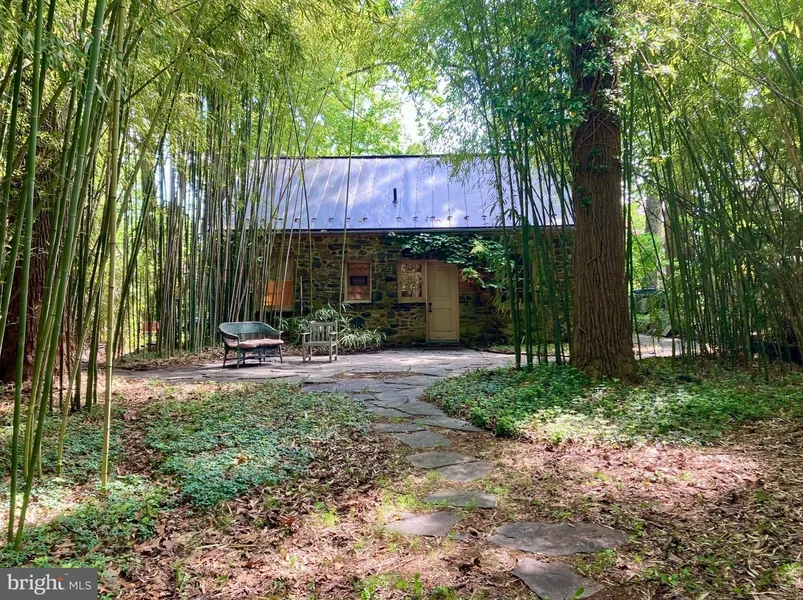 The interior of this charming stone cottage is truly special, featuring handcrafted details that are simply remarkable. Upon entering, you are greeted by hand-stenciled artistry resembling "carpets" on the original oak flooring in the foyer, dining room, and hallway. This unique touch sets a warm and welcoming tone for the home. The owner, who has an architectural background, has made this cottage one-of-a-kind with custom-made details including doors, windows, antique latches, and meticulous attention to detail. A highlight of the cottage is the elegant stone wood-burning fireplace, complemented by smooth, seamless ceilings and walls that showcase the careful restoration of this nearly 80-year-old home. With two cozy bedrooms and a beautifully finished bathroom, every element of the cottage reflects thoughtful craftsmanship. The features are designed with longevity in mind; for instance, the Terne Tin roof can last a lifetime. The open attic, equipped with a wood-burning stove, provides versatility and can serve as an artist's studio, additional bedrooms, or offices. The lower level retains the original stone walls, with handcrafted elements concealing updated mechanical systems, and custom features that enhance the home's unique character. In the backyard, trained bamboo has been creatively used to create "sitting rooms," complemented by patios and landscaping made of hand-cut stones from a local quarry, laid in ground stone dust and slate from the original roof. This is not an ordinary home; it is meant to be admired by those who appreciate the handmade details throughout. For more information, please call.