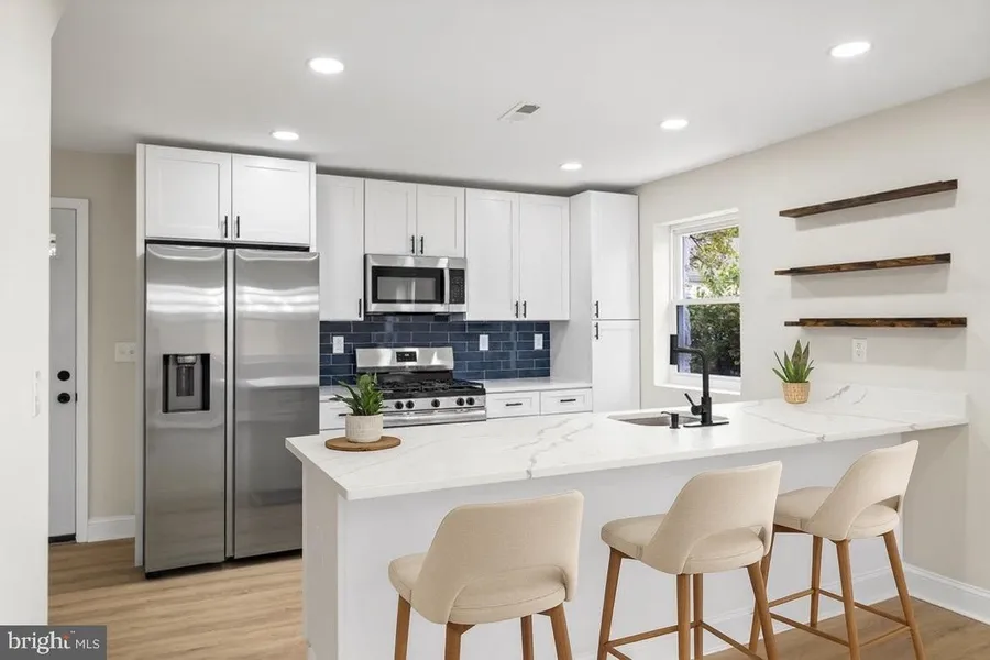 Welcome home to 5514 Liberty Heights Avenue! This newly updated 4 bedroom, 2 bath single-family home offers the perfect blend of modern upgrades and charm. The interior boasts a bright and inviting living room with large windows, a modern ceiling fan and a cozy fireplace. The open dining area flows seamlessly into the kitchen, perfect for entertaining. The newly renovated modern kitchen offers top-tier features like white shaker cabinets, quartz counters, tile backsplash, a spacious breakfast bar island, and new stainless-steel appliances. Upstairs find 4 bedrooms and a full bathroom offering modern and luxurious finishes, new tub and tile surround, and an upgraded double vanity. The fully finished lower level is perfect for a family room, guest space or home gym, and offers a full bathroom. Out back, you'll find a nice sized yard perfect for hosting cookouts or enjoying a quiet evening on the covered porch. Paved driveway located at rear exterior of the home. Located near local gems like Forest Park Golf Course, Gwynn Falls Trail, and Druid Hill Park. Enjoy shopping and dining in nearby Woodlawn and Catonsville, all just a short drive from downtown Baltimore. Convenient to commuter routes I-70 and I-695.