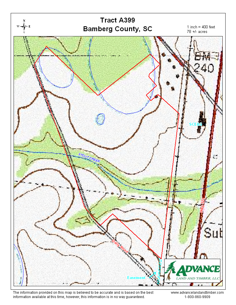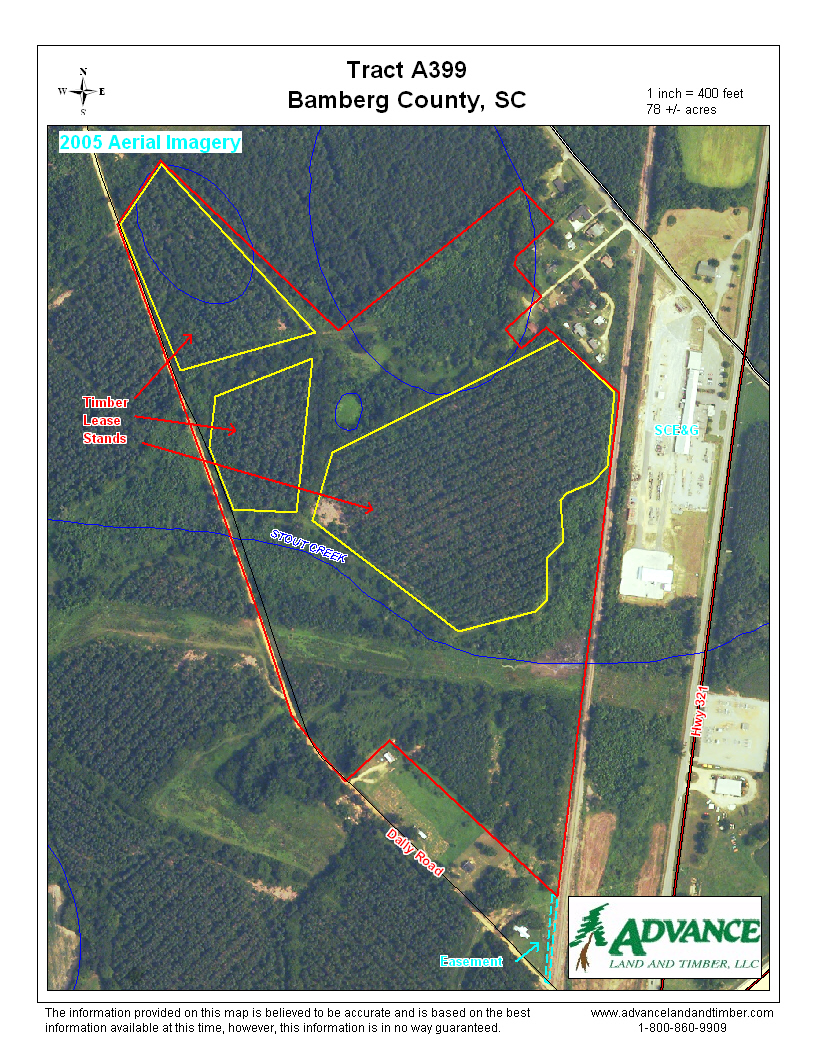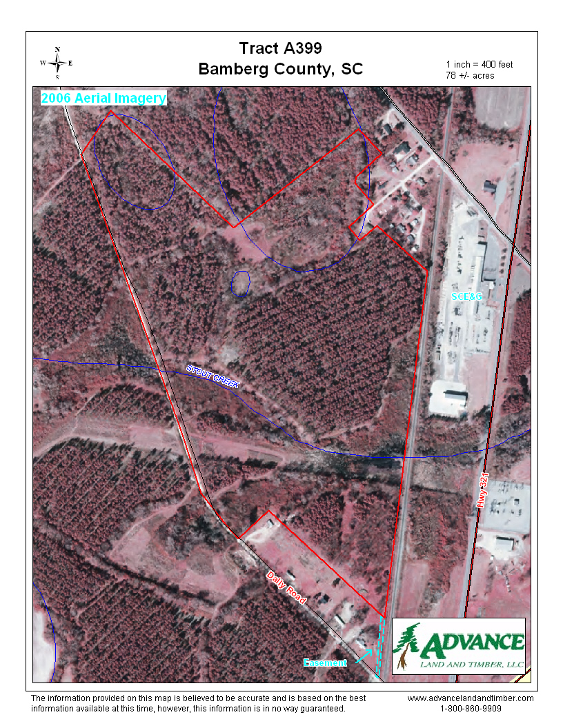 Research Parcel InformationFrom the town of Denmark, SC go North on Hwy 321 approximately 3/10's of a mile. At the flashing light that intersects Hwy 321, Road 70 and Dally Road, take a left on to Dally Road. You immediately cross the Railroad Tracks. The first access easement starts on the right after crossing the tracks with the property starting behind the several houses on the right that face Dally Road. Travel past the 5 houses on the right (property behind them is part of the tract) and the property boarders the last house and fronts Dally Road for about 2,300'. Dally Road is a county maintained dirt road.