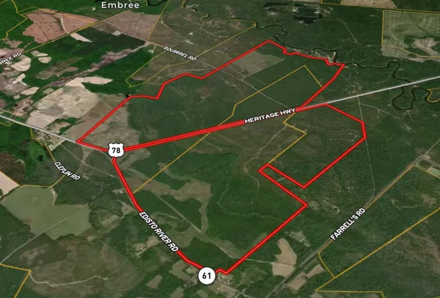 The Edisto tract is located in Bamberg County three miles from Branchville, SC. The property contains 1,373 +/- deed acres and is bisected by U.S. Highway 78. The Edisto tract comprises the parcel north of U.S. 78 (North Parcel) and contains 627.3 GIS acres. The parcel south of U. S. 78 (South Parcel) contains 736.5 GIS acres. The property is being offered for purchase as individual parcels or as a total Edisto tract. The Edisto tract is a conserved property that limits subdivision and development but allows full utilization as a recreation and timber management tract.