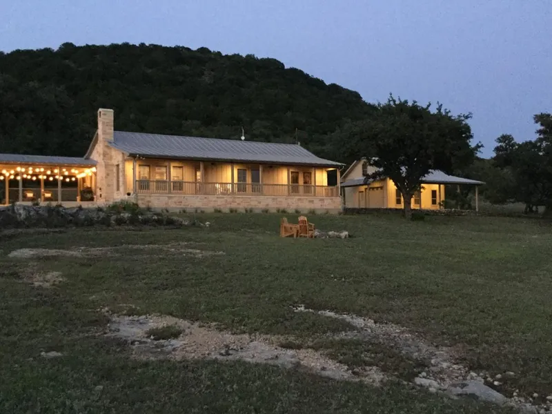 Gentlemen's Ranch sitting on a beautiful 137 ac setting among the hills. Steps away to a great swimming hole on the North Prong of the Medina River located off of the property. 5 automatic Deer Feeders, 1 platform turkey feeder, 4 strategically placed deer blinds & two large automatic watering catchment systems. 2012 Hill Country Classics native limestone home in impeccable condition, well cared for by meticulous owners. 3 bedroom 2 bath in the main house, additional bed and bath over well built barn/garage that has window unit cooling and can be utilized as additional living space. Approximately 70 acres of usable, level to rolling land that has good fencing, suitable for Coastal, Grazing, Arenas, etc. Back Dropped by 60 acres of a rugged mountain ideal for wildlife cover, exploring, and hiking. Nice rugged road/trail to the top that is in pretty good condition, possible to drive with...