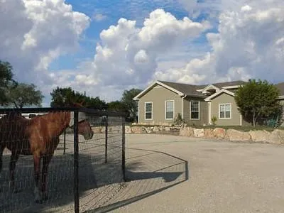 Gorgeous hill country home with big open floor plan. Lite/brite vaulted entry with beams. Upgrades: molding, rope lighting, designer ceramic tile display, architectural niches and archways, island kitchen eat at bar, vaulted w/beams. Whirlpool tub, separate shower with multiple heads. Would make an excellent office home base, as breezeway style entry separates living qtrs. Complete pipe fencing, big circle drive with separate fenced area for horses, barn & storage. Dual drive thru gates. Verify Sf, schools, taxes, HOA,fees MUST SEE INSIDE!