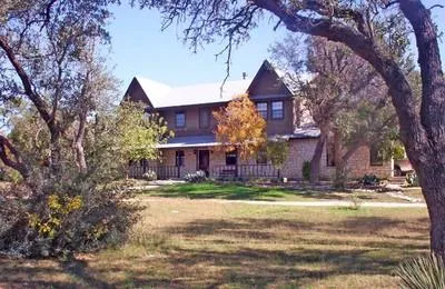 Breath taking Hill Country custom built home between Bandera and Boerne on 24+ Ag exempt acres. Wrought iron gate at entrance, circular drive, covered porches front and back, beautiful pool, huge family room with stone fireplace, open and spacious island kitchen, high ceilings, wonderful master suite with fireplace, big whirlpool tub, walk in closets, study with bookshelves, huge utility room/sewing room, ceramic tile throughout, carpet in bedrooms, game room, barn, garden green house, red bluff creek, fenced/cross fenced, tons of live oaks, elms and pecans.