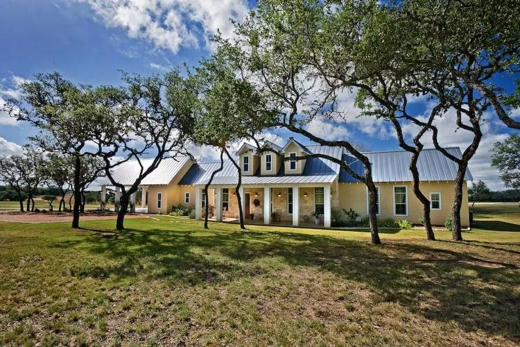 This spectacular country estate is surrounded by manicured rolling pastures and great views on 50+/- acres between Kerrville and Bandera. The 3 bedroom, 2 bath Fredericksburg style custom 2 year old home includes office, large upstairs game room or 4th bedroom plumbed for 3rd bath. A well-appointed gourmet kitchen showcases granite tops, stainless steel appliances, and cook top in island center for added convenience and style. Architectural design elements include 12' ceilings, windows galore, plaster wall finishes, granite counters, and tin backsplashes. Downstairs, the master suite assures privacy with elaborate space, double vanity, separate shower, and garden tub. The front of the home with lush grounds allows for a striking Hill Country view.
