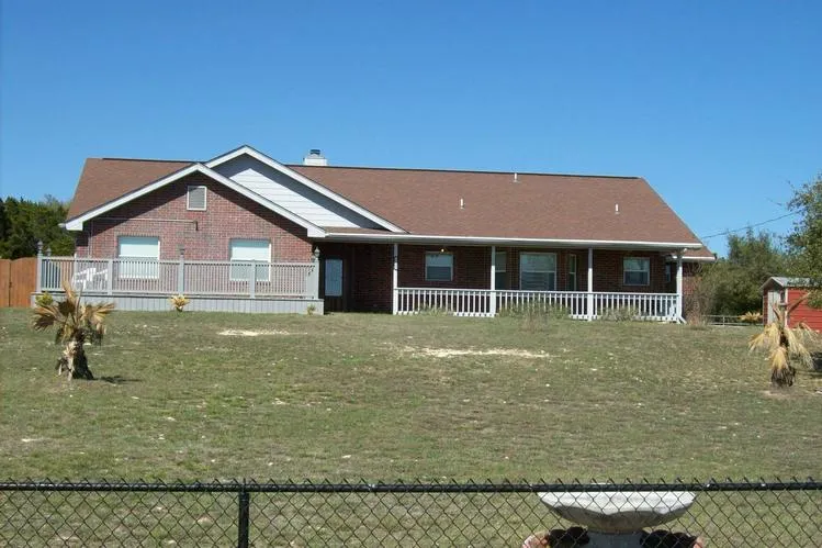 Gorgeous 1-story, 4-side brick, 3/2 on completely fenced gently sloping lot w/Medina Lake views. Deck on front to entertain & enjoy the outdoors. High ceilings in living area w/fireplace. Two bedrooms have outside access to patios. Privacy fenced back yard; separate chain link fenced area for dog run; another separately fenced area for horse w/3-sided horse stall. 2 storage sheds. Home built in 2005 in excellent condition. Private neighborhood park for Medina Lake access nearby. Easy commute to San Antonio, Boerne, Bandera. Near recreation, stores, restaurants.