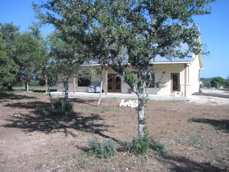 Fantastically built and apportioned barndominium in Bridlegate Ranch Subdivision on 2 acre lot. Whether you are looking for a weekend retreat, part time residence or a full time homestead....this is it! This custom barndominium is truely a wonderful property. With 1500 sq feet, half being living quarters and half being open finished out "barn" area this property has unlimited use possibilities. The living side consists of 750 square feet which includes custom island kitchen with granite, large bedroom with walk-in closet, bath with dual vanities and custom tub/shower combo, laundry area with half bath. The remaining 750 square feet is finished out "barn" with oversized overhead door and the area can be used for ATV, vehicles, RV or as an area for storage and entertaining. The entire 1500 square feet has beautiful stained concrete floors for an instant "wow" factor. Porches on each side with cieling fans and custom built concrete/rock planters in front of porched. Asphalt drive with area for parking multiple vehicles. This lot has an outstanding view and can be purchased with additional lots to go from 2 acres to up to 8 total acres! This is a fantastic property with quality contruction and pride of ownership in every detail. Come own your piece of the Texas Hill Country.......viewings are easy and friendly so give us a call today!