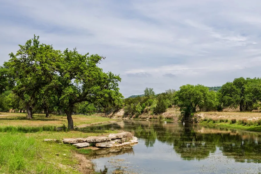 Water: The Beekman Creek Ranch has its own spring fed lake that encompasses a large area of service water. The limestone bottoms and outcrops create a photographic setting as the lake elegantly caresses exposed rock outcroppings and grassy banks all along the edges of the lake. The resident swans and ducks swim along the shore line by the rock outcroppings and oak trees. The lake has been stocked with several varieties of fish. With the creek situated in a valley the cool breezes and long days offer much excitement whether you have a fly rod or spinning rod in your hand.