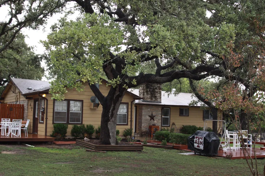 Here is a beautifully updated one story 3-2 ranch style home with views of the hill country off the back deck. The house is designed with an open floor plan. The living room features a vaulted pine ceiling with a masonry wood burning fire place. The updated open kitchen allows entertaining room for large friends and family gatherings. The kitchen features white appliances, butlers pantry, tile counter tops.