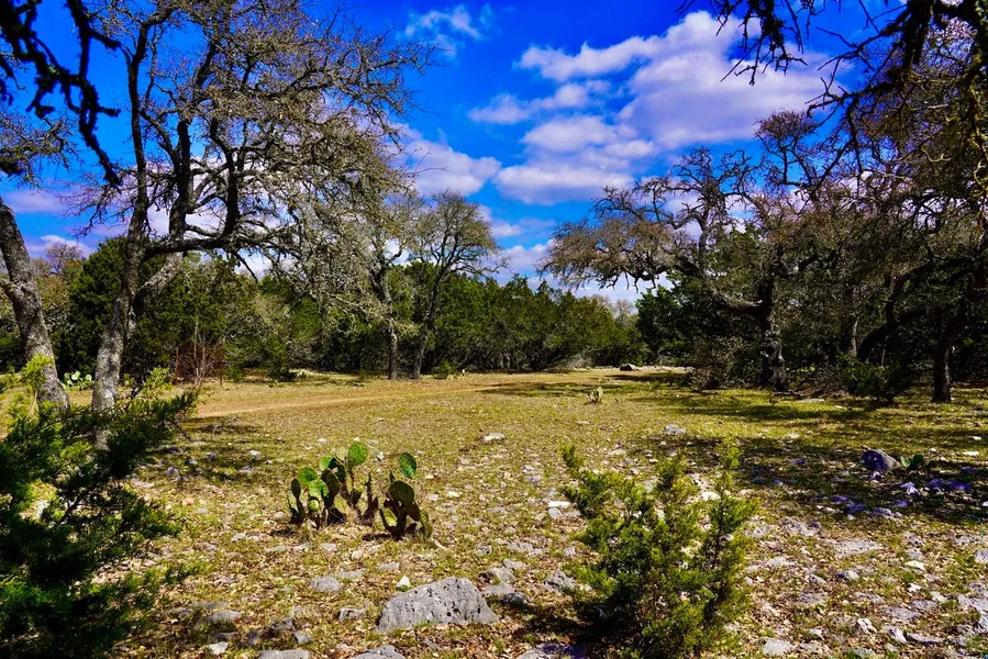 Land is spread with oaks, native grasses and exposed limestone