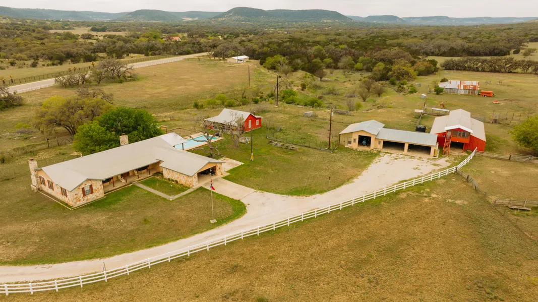 Welcome to the farm, a 57+/-ac income producing property 2 miles from Tarpley, TX. This getaway features a 3/2 rock faced, one story main house with 2 fireplaces and a 2 car garage accessed off FM 470 via electric entry and paved drive. Additionally, in the main compound, are 2 cozy and well-appointed cottages, a centrally located pool, and a studio apartment above the horse stables. A fifth dwelling is a like new caretaker's home distant from the main compound with its separate entrance. Standing apart from most land offerings in this area, the terrain and topography is open and mostly flat consisting of soil that is both fertile and tillable. In the past it has been used as a miniature horse breeding farm, and it is particularly well suited for horses or other pleasure animals being cross fenced, well-watered, and having covered stables. A fully stocked workshop, 3 bay equipment barn, and storage area were designed and built to be functional. Much equipment, tractor, implements, and even a like new utv are included with this offering. The pleasant views of the surrounding hills are still yours to behold, but the ground underfoot is usable and gentle country. A domestic water well furnishes water via buried lines to the various structures throughout the property. 2 additional capped wells are strategically located for any contemplated future water development. This property is perfectly suited to host an agricultural breeding enterprise along with the ability to furnish supplementary income as a charming, well located bed and breakfast. - 5/19/2023 10:00:41 AM