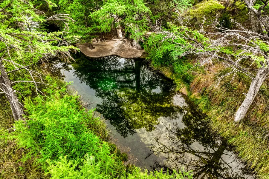 First of all, for those who are not familiar with Mill Creek, lets just say, it is STRONG and also serves as a leading tributary to the Sabinal River. There are many springs that feed into Mill Creek, and on this property specifically, there are at least two. And to add more appeal, this property features BOTH sides of the creek. The clear waters appear to make the depth deceiving, but if guessing, it can be up to 8 feet in some areas. Excellent swimming holes and privacy. Positioned just perfectly beneath the verdant canopies, a concrete patio crafted into the side of the bluff provides a serene vantage point for picnicking, lounging, fishing, diving, cannonballing and just hanging out. A small dam channels the water creating the welcoming sound of flowing water. Superior outdoor entertainment environment.