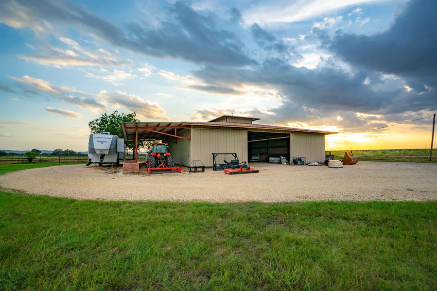 Two substantial outbuildings and well-designed working pens enhance the ranchs usability. A 70-foot by 70-foot shop with an overhang provides abundant storage for tractors, trailers, or equipment, while a nearby 55-foot by 65-foot barn is ideal for livestock, hay, or feed. The working pens located toward the back of the property make it a capable setup for cattle or horses, combining practicality with the potential to evolve into a full-scale homestead or ranch operation.