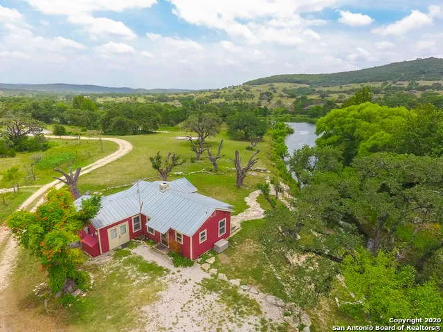 ONE OF A KIND. HOME WAS THE ORIGINAL HOMESTEAD FOR THE HILLS OF BANDERA RANCH BUILT IN EARLY 1900'S (PER FAMILY OF THE RANCH OWNERS). IT HAS HAD SOME REMODELING OVER THE YEARS BUT STILL HAS OLD WORLD CHARM. FIREPLACE, HARDWOOD FLOORS AND LIGHTING ADD TO THE CHARM. BUT THE REAL TREAT IS OUTSIDE. APPROX 6.27 ACRES SITTING ON THE WATER. DROP YOU FISHING POLL FROM THE BANK OF YOU HOME. FIRE PIT ALONG THE RIVER, TREE SWING AND MORE. ADDITIONAL BUILDING CAN BE FOR CAR AND BOAT PARKING OR EASY TO CONVERT TO BARN. PROPERTY IS FENCED. ADDITIONAL PARKING SPACE FOR RV WITH HOOK-UPS. MANY BUILDING SITES TO BUILD YOU NEW HOME OR JUST ENJOY TO LAID BACK LIVING AS IT IS. . THIS IS A MUST SEE IF YOU WANT TO ESCAPE ALL THE HASSLE OF THE BUSY LIFE.